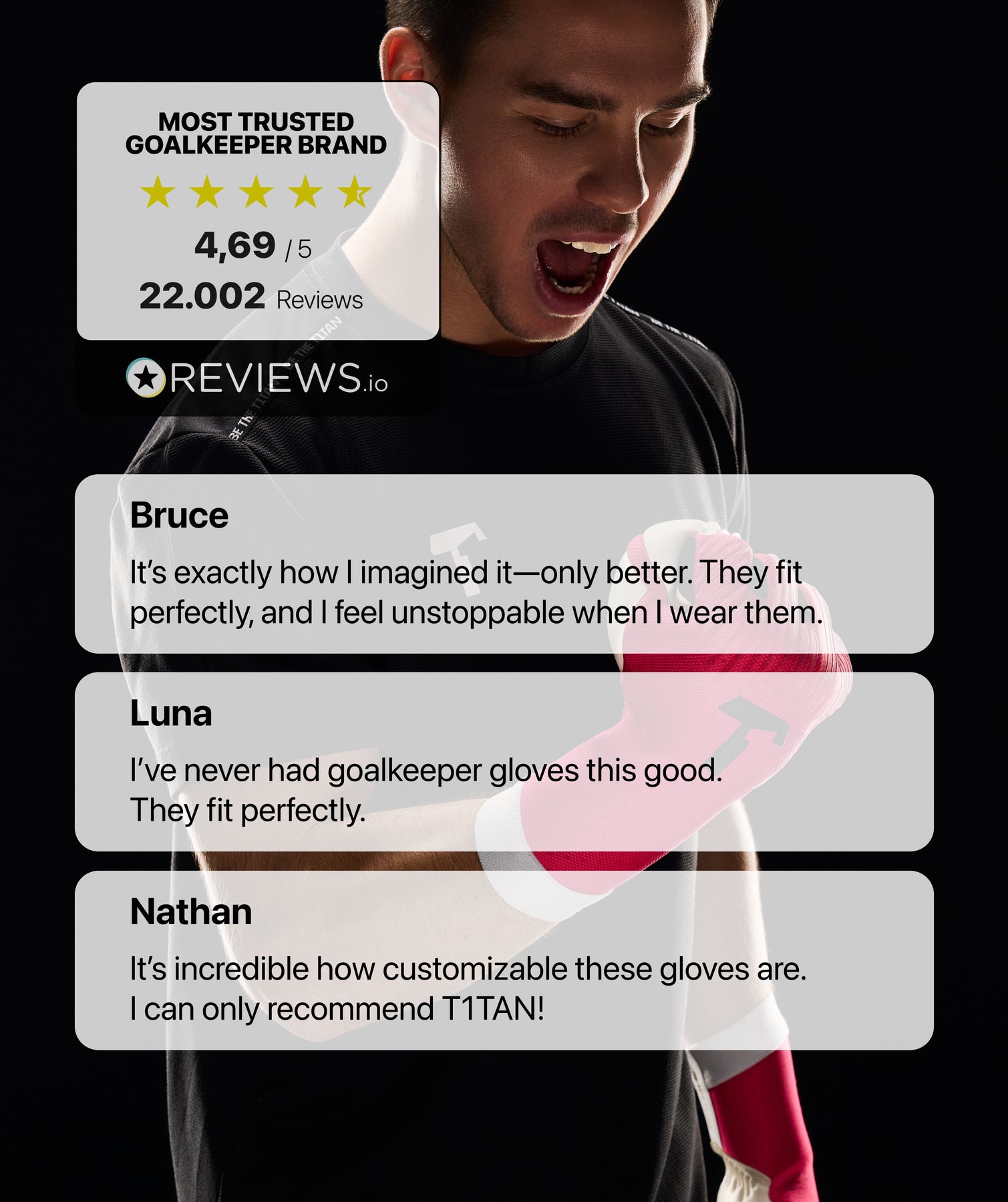 Professionals normally only use our goalkeeping gloves for a few weeks, since the demands at this level are extremely high. At T1TAN, you get the same quality as the professionals do.